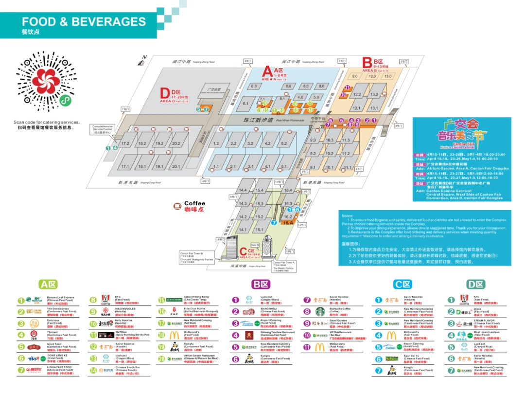 广交会“餐饮点布局图”。图/广交会展馆微信公众号
